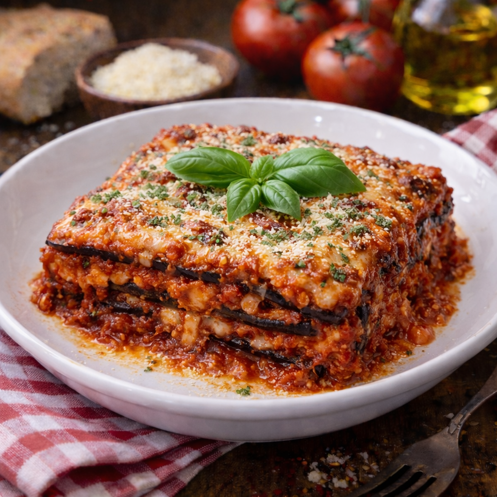 | PARMIGIANA: Auberginen, Tomatensauce, mozzarella, grana padano, Basilikum | Piccola -15, Grande -23 |